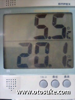 上が外の気温、下が家の中の気温。