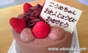 プレートに名前もはいって、ろうそくも1本ついて。