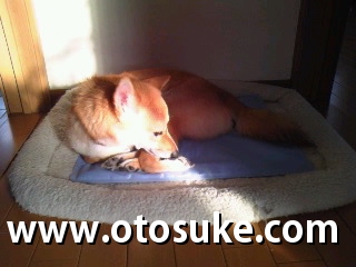 西日にあたりつつ、ヒンヤリなクールマットに乗っています。