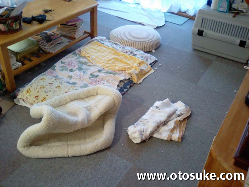 おかげで、よだれでシトシト。乾けばパリパリになります。